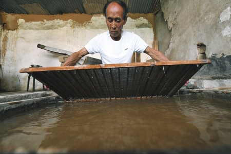 2、郑家世代从事手工麻纸制造,1827年创办了手工麻纸制造坊,郑变和是第五代传人。