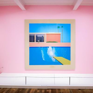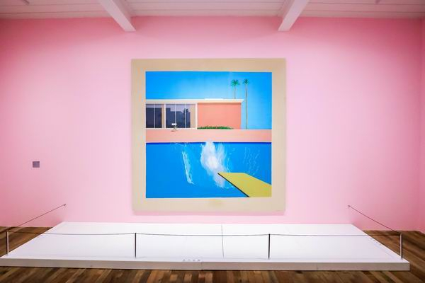展览选择了霍克尼具有标志性的“泳池”系列作为主推的展出作品。该展延续了2017年泰特美术馆霍克尼回顾展的主视觉元素——大水花。那次回顾展创下47.8万观众买票参观的纪录(打破达明·赫斯特2012年在泰特现代美术馆创下的46.3万观众纪录),成为泰特美术馆最受欢迎的在世艺术家个展。展览随后于法国巴黎蓬皮杜艺术中心、美国纽约大都会艺术博物馆巡回展出。此次展出的作品包括泰特美术馆的珍贵馆藏,也是大卫·霍克尼标志性的系列性杰作,如《更大的水花》、《我的父母》等。