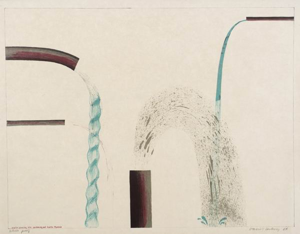 大卫·霍克尼,《放水进泳池,圣莫尼卡》