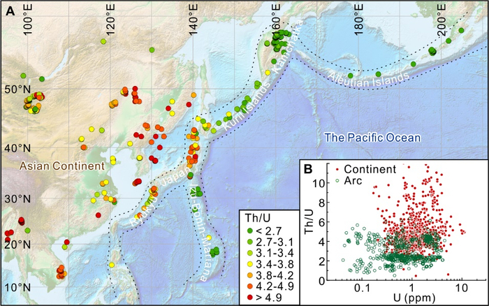 东亚地区和太平洋北部1000万年前至今的岩浆岩的Th/U分布特征