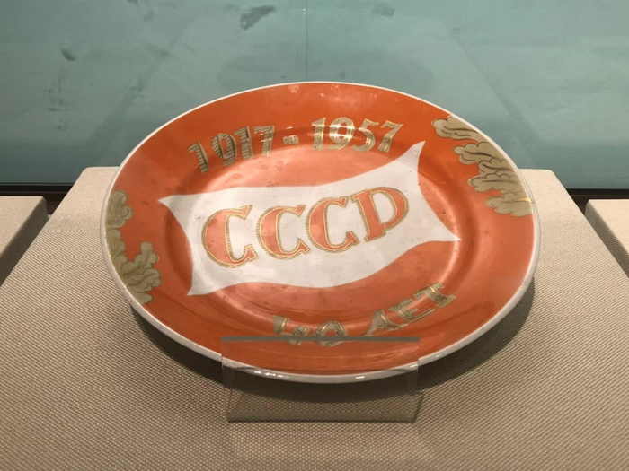 苏联政府赠送给宋庆龄的十月革命胜利四十周年纪念瓷盘(上海宋庆龄故居藏)