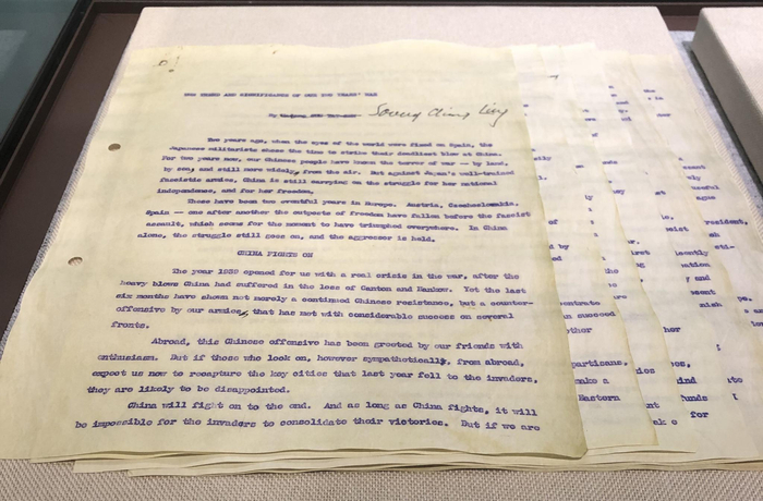 这一特展汇集京沪两地六家相关宋庆龄纪念单位的藏品,呈现了400余件相关文献、文物、照片,其中100余件展品系首次在沪展出。展览依照时间顺序,以宋庆龄的言论为线索,用文物讲述了宋庆龄参与缔造新中国、建设新中国和架设通向世界的友谊桥梁的奋斗历程。我们在此选取其中一部分展品及其背后的故事与读者分享。