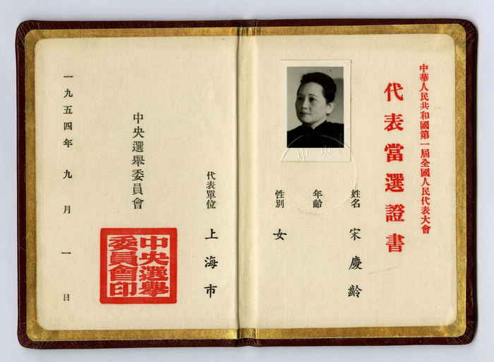 宋庆龄的第一届全国人民代表大会代表当选证书(北京宋庆龄故居藏)