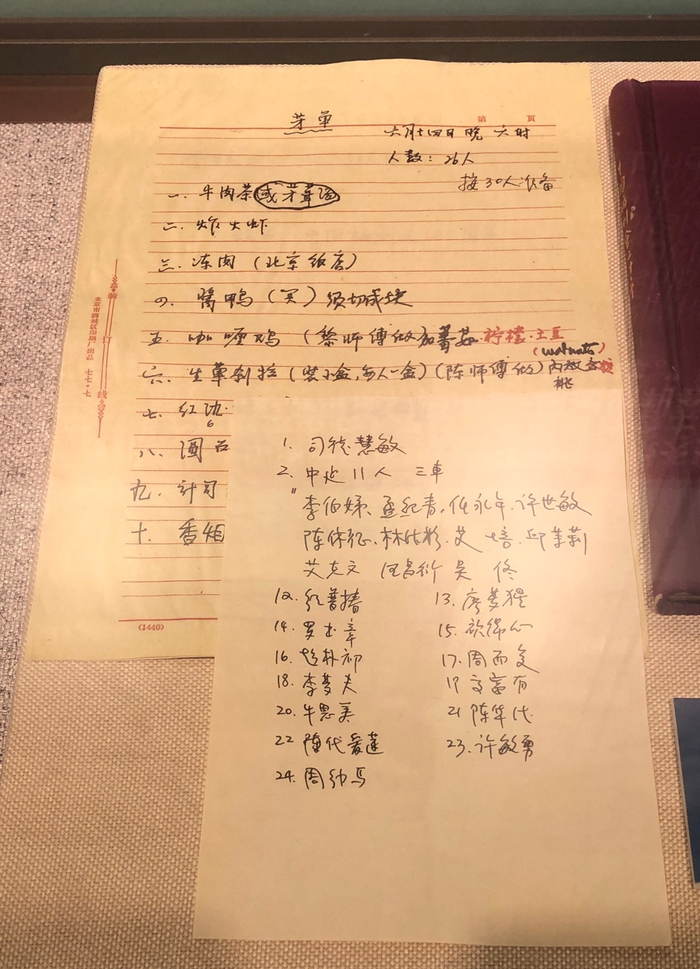 宋庆龄在北京寓所为庆祝中国福利会成立四十周年宴请客人的人员名单和菜单(北京宋庆龄故居藏)