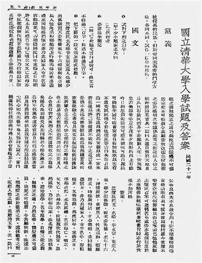 清华最出名的一次考试题大概算是1932年的国文题了。那次的作文题是《梦游清华园记》,这个题目很自由,你可以没有做梦,也可以真的做了梦,愿意怎么做就怎么做;也可以说自己的志向,还可以给学校提要求,你理想的学校是什么,怎么作都可以。