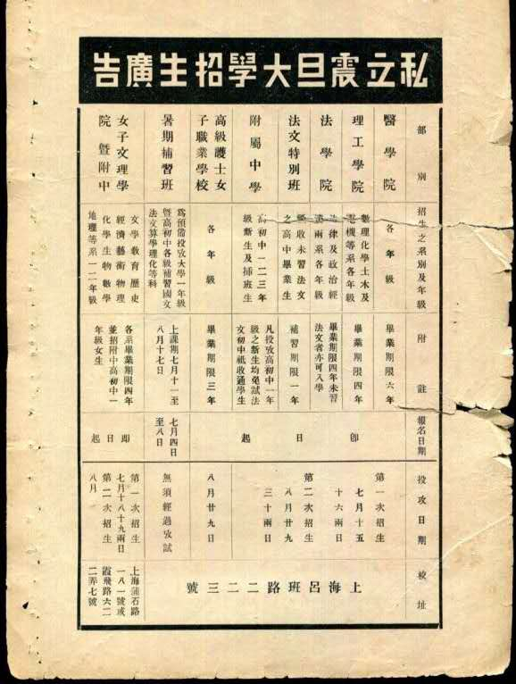 民国时的大学,有公立(国立、省立等)、私立和教会办学的,知名的国立大学如清华大学、北京大学等;私立中闻名的有南开大学;教会大学中也有颇负盛名的燕京大学、圣约翰大学。对于中学毕业后立志升学的学子们来说,提前做好功课,研究各校的招生条件和考试时间就很重要。