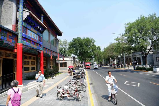 雍和宫大街南段昨天(9月2日)撤掉了施工围挡,露出新面容。从2018年5月北段动工,到如今南段完工,经历17个月的精雕细琢,通过拆除违法建设、封堵违规开墙打洞,以及危房修缮重建、建筑外立面提升等精细化整治提升手段,整条大街呈现出了“慢街素院、儒风禅韵、贤居雅巷、文旅客厅”的历史风貌。