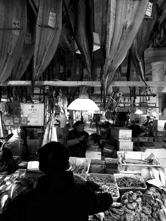 冬天,上海的菜场为顾客制作腌肉、灌香肠和风鱼。这些委托制作的食物涉及更加复杂的人际关系。这种关系是非标准化的,需要耗费许多时间来认知、熟悉、了解,并最终达成信任。信任并不绝对,因为它并不基于法律约束,而是基于不断微调的社会契约。本文图片均由作者拍摄