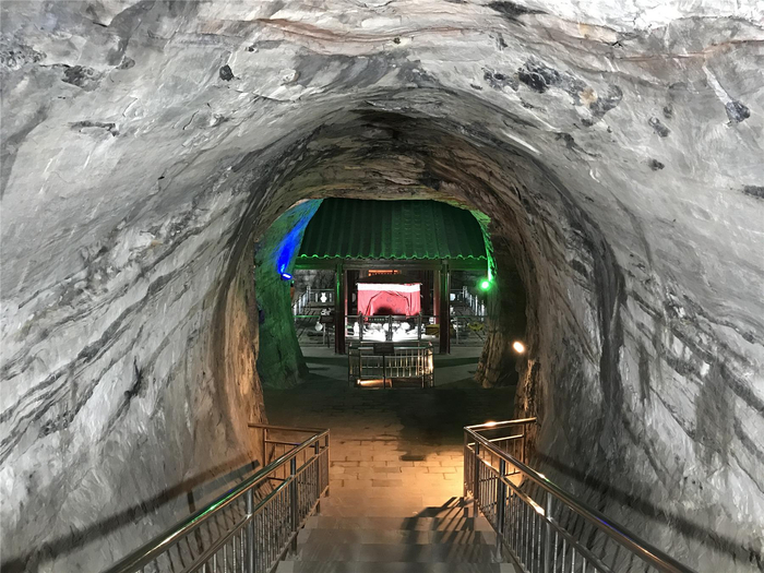在这么高的山峰上修墓,比起刘胜的兄弟宗亲们那些在平原上平地起封土的诸侯王大墓,防盗性能不知好了多少倍,难怪两千多年来都没有被盗掘。但修墓难度也可想而知。据分析,满城汉墓的修建方式是先用火烧岩石,待岩石热后,立刻泼上冷水,瞬间温差的变化使得岩石苏脆,这时再锛凿锤斧一起上,才在山岩间生扣出墓洞来。
