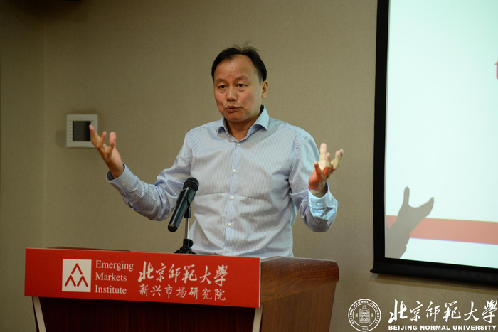 北师大一带一路学院执行院长兼新兴市场研究院院长胡必亮教授在致辞中感谢萨拉杰丁博士对北师大新兴市场研究院的厚爱与支持,同时重点提出了目前新兴市场研究院、一带一路学院目前研究的一些重大问题,如“一带一路”与全球化背景下的中国开放发展问题、深化改革问题、中国与世界的关系问题等。他指出,这些问题都有赖于在萨拉杰丁博士加盟新兴市场研究院后开展深入研究,并指导来自世界各国的学员就这些方面的相关合作进行深入探讨。