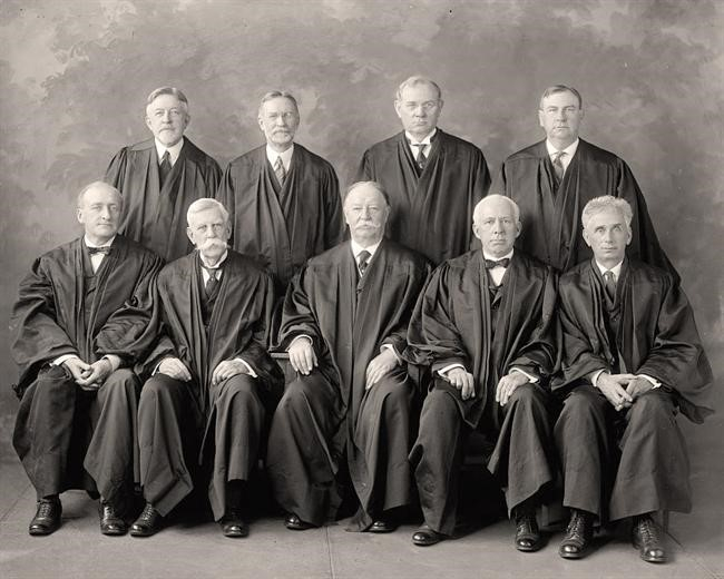 1927年的联邦最高法院9位大法官,前排居中的是第10任首席大法官、曾出任第27任总统的塔夫脱