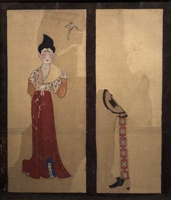 苏州博物馆的负一层展厅,则展出了战国以来,屏风在历朝历代的各种表现形式,包括战国错金银铜虎噬鹿屏风座、东魏武定元年翟门生屏风石床、繁峙南关村金代墓壁画,以及一系列唐代吐鲁番墓葬出土的绢本设色绘画和清代涵盖玉制、漆器等各式各样的屏风。