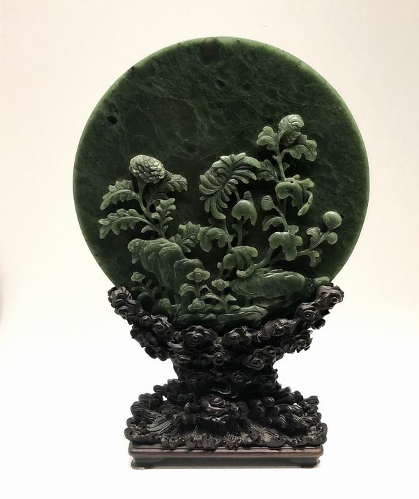 清 早期黑漆边座嵌竹花卉图双面插屏