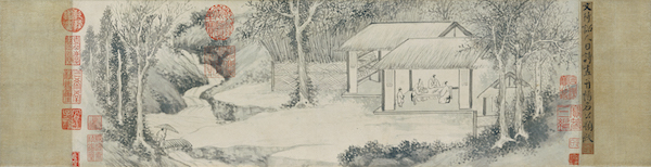 据考证,《重屏会棋图》最初是装裱在一扇独立的屏风上的,是宋徽宗将其重新装裱为卷轴。画面的重屏之外,或许还有另一层时空——观画的我们所处的这个世界。