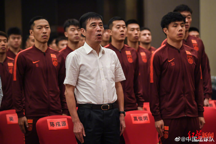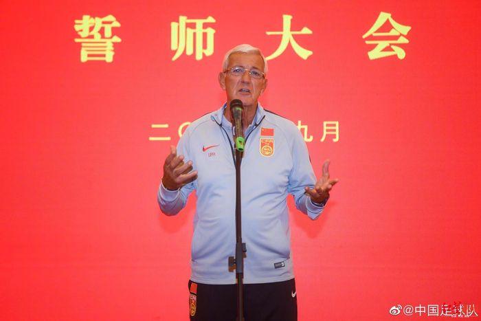 主教练里皮也在仪式上对国足送上鼓励,“足球是团队项目,一个成功的球队要依靠团队的力量,要有一个共同的目标,团结一心才能更加勇敢。希望每个球员都能尽快适应国家队打法,尽快融入队伍。同时,也希望大家能帮助队员放下压力,让队员勇敢去比赛,勇敢去取得胜利。面对四十强赛这样的重要比赛,大家要为国家队做出最大的贡献。”里皮表示,“我相信我们会成为非常优秀的团队,相信我们将继续进步、继续成长,一定会越来越好。”随后,国足队长蒿俊闵带领全体队员在国旗前庄严宣誓,“为完成2022年卡塔尔世界杯任务,我将坚决执行主教练的命令;尊重规则、尊重裁判、尊重对手、尊重观众;恪守职业精神,绝不慵懒懈怠;展现良好形象,做青年人的榜样;自爱自律,为家人争光、对自己负责;永远把信任送给队友,我就在你身边;全力以赴拼搏,誓死捍卫祖国荣誉。”最后,全体国足队员接受了陈戌源赠送的学习书籍。