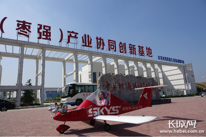 9月5日,走进衡水创新港,广场上的一架红色小型飞机最先吸引了记者的眼球,“大家看到的这架飞机,是我们自主生产的‘蟋蟀’飞机,是世界上最小的超轻型载人飞机,飞机的总重只有75公斤,一般成年人单手就可以推动。”衡水深空动能科技有限公司总经理刘丹现场一边向记者介绍,一边展示了“蟋蟀”飞机的滑翔、拆卸、驾驶技巧。