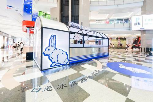 GODIVA X大白兔冰淇淋快闪店开在来福士一楼,极高的人流量注定了想要在这里买上一支冰淇淋,你必须得排挺长时间的队伍了。
