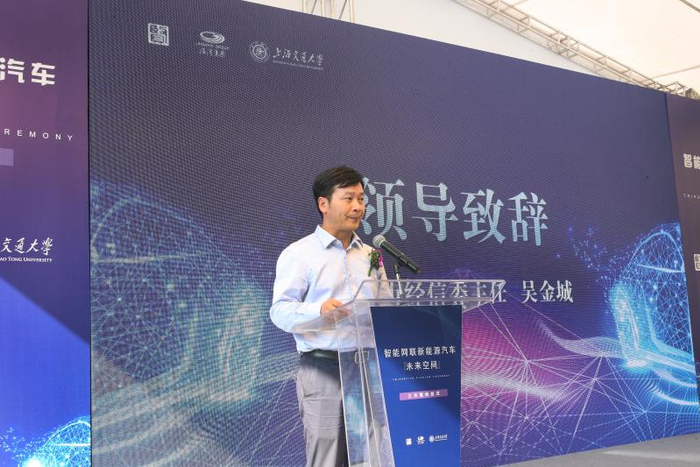 吴金城在致辞中表示,奉贤、交大、临港集团三方牵手合作,为上海智能网联汽车发展注入了新活力,带来了新动力,希望三方继续深入合作,做好“三个聚焦”“三个加强”,坚定发展智能网联汽车,在上海打造世界级汽车产业中心的步伐中做出贡献。