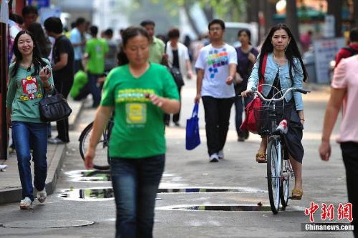 ↑资料图:“白露身不露”,北京街头行人“混搭装”出行。金硕 摄