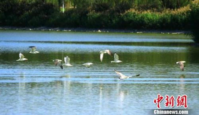 ↑资料图:白露过后,张掖润泉湖公园迎来大批灰背鸥鸟。陈礼 摄
