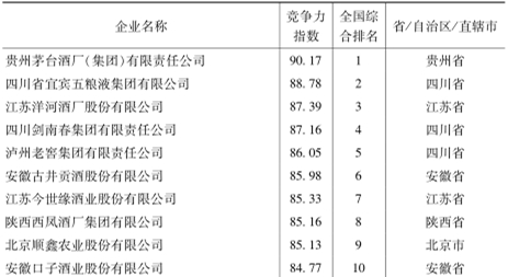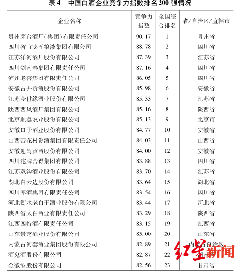 中国白酒企业竞争力指数排名200强前十 《报告》部分截图
