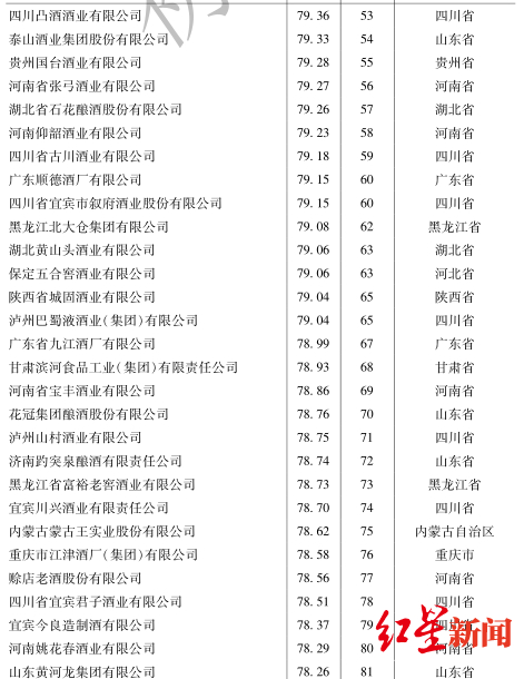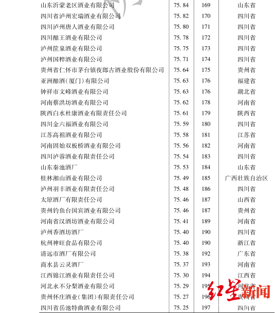 中国白酒企业竞争力200强重磅首发 贵州茅台居首