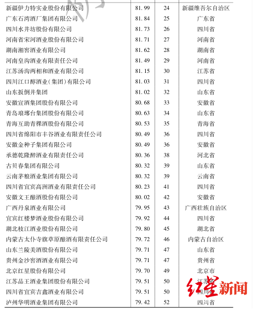 中国白酒企业竞争力指数排名200强名单