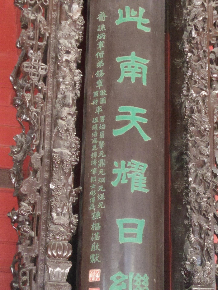 林福杰先生十多年前曾采访村中陈族长者,获悉陈始昌“到他父亲在香港开的建材商行‘怡德盛’当掌柜。……起用他当中国驻秘鲁国大使。”(林福杰:《新会风物掌故选》,第196-197页)。这一条得自“田野调查”的史料,与香港东华医院档案完全吻合。陈炳章为1901年度香港东华医院主席,在《东华三院百年史略》中,陈炳章名字后面注明其身份为“怡德盛殷户”。(1970年版第67页)两者互证,可知怡德盛属于建材商行,那么,陈炳章与陈照南不仅同宗、同村,而且都从事建筑行业,陈照南的建筑商号“怡南号建造行”,与“怡德盛”同样都是以“怡”字开头,从当时的营商习惯来看,两者之间存在着十分密切的关系。陈家祠祖堂第一联出自梅江村陈炳章、陈始昌家庭,应该没有疑问。