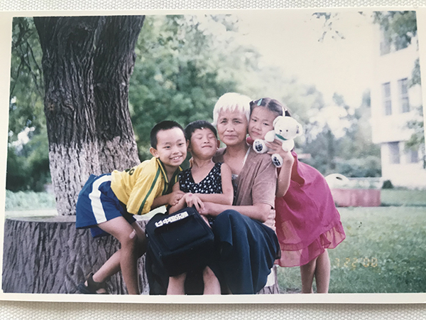 姜淑梅学写字前,帮忙带小孩时的照片。