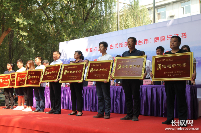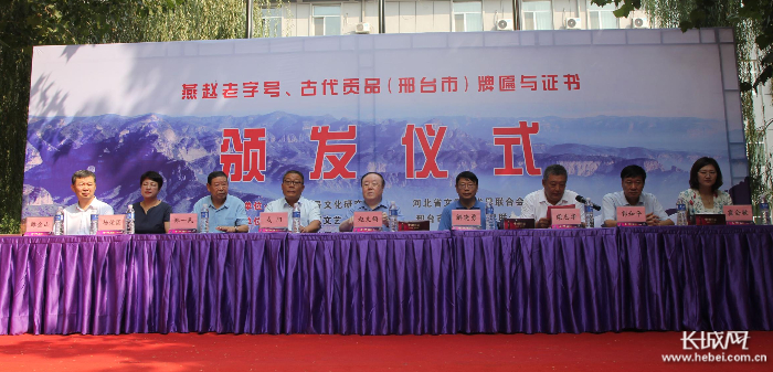 长城网邢台讯(记者 魏亚慧)9月9日,河北省首场燕赵老字号、古代贡品牌匾与证书颁发仪式在邢台市举行。