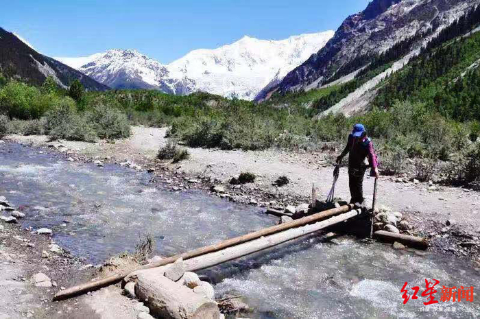 张春雨拄着拐杖去米堆冰川/据受访者