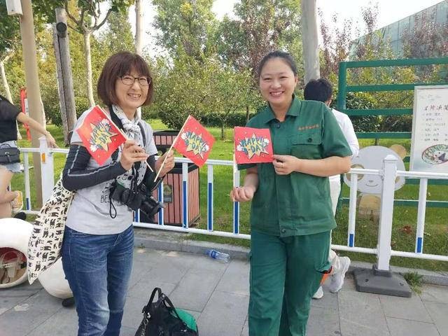 有三位日本友人飘洋过海,专程从东京赶到淮安为“隆浜”庆生。据马跃主任介绍,他们分别叫增子桂子、增子和久、磯尾和代,都是熊猫“铁粉”,从“隆浜”出生起,每年都会专程给“隆浜”庆生,已经坚持了十余年。8日一大早刚开园,这三位日本友人再次出现在淮安市动物园门口。