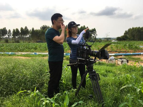 陈怡导演在海南东方市的玉米地里拍摄无人机测试