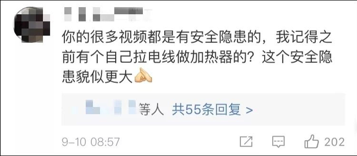 还有一次她改装饮水机使其短路,用来煮火锅,遭到了@绵阳消防 的点名批评,“看完顿觉无语”。