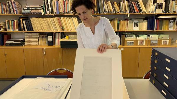 在以色列,另一个收藏爱因斯坦手稿较多的是以色列博物馆,当然与希伯来大学的爱因斯坦档案库的收藏无法相提并论。以色列博物馆绘画和印刷件策展人Ronit Sorek向“澎湃新闻”展示了6盒共72页资料,这也是他们馆藏的全部爱因斯坦手稿。