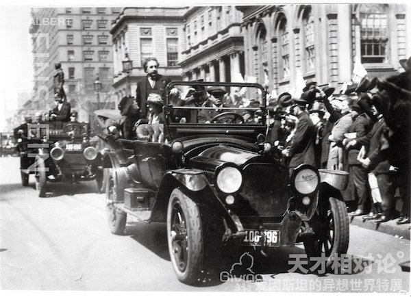 爱因斯坦在美国为希伯来大学募款的车队之中