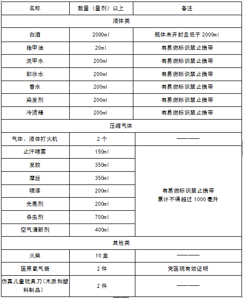 (十)国家法律、行政法规、规章规定的其他禁止持有、携带、运输的物品。