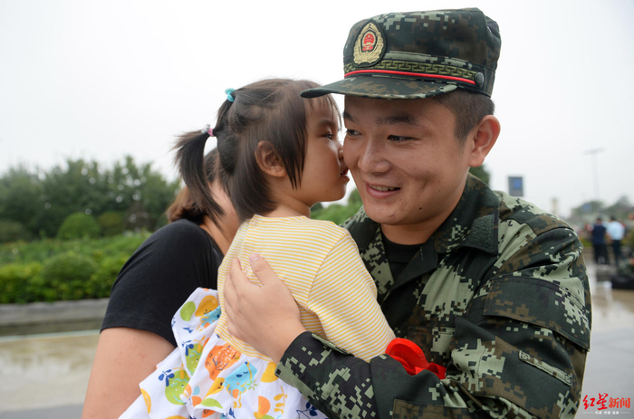 侄女亲吻送别新兵入伍的舅舅