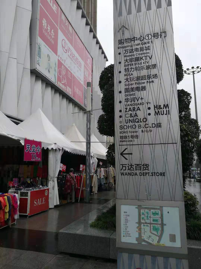 购物中心门口的不锈钢指示牌上,显示的仍然是万达百货。