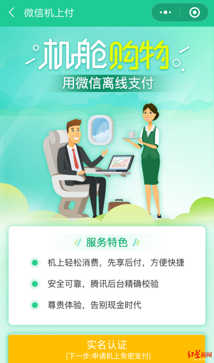 这也意味着,即便乘客身处万米高空、手机处于飞行模式,但当遇到消费场景时,仍然可以通过“微信机上付”进行无网支付,购买所需的物品。