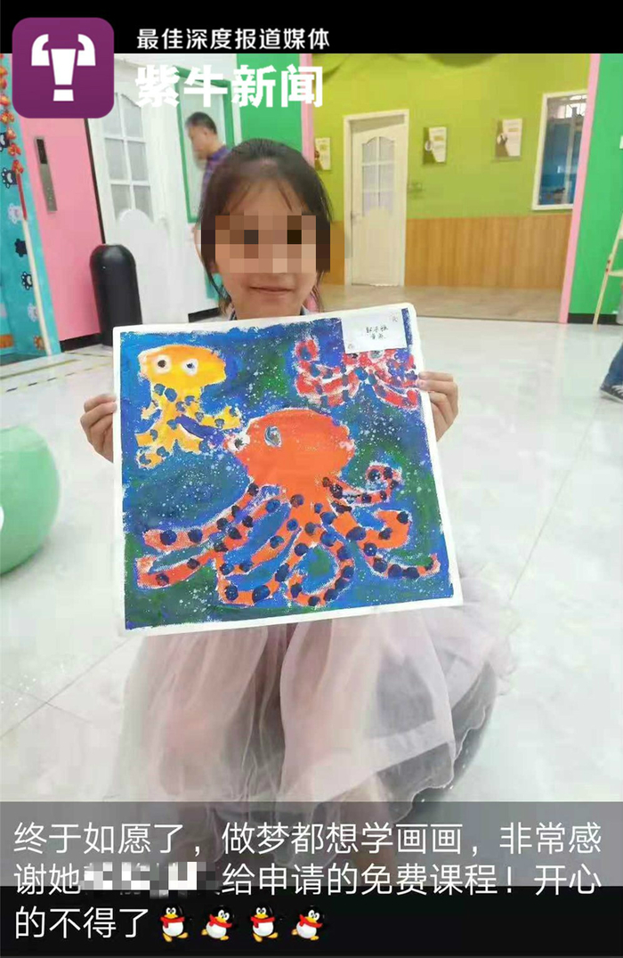 小雅确诊不久,就读的幼儿园主动免除了她全部的学费和伙食费。得知小雅“做梦都想着画画”,有一个好心的阿姨主动联系了一家美术培训班,为她申请了免费课程,圆了小雅的“画家梦”。在尚女士的手机相册里,女儿举着画画笑得很灿烂。更令尚女士感动的是,此前因为不堪重负,她曾通过网络平台筹款,而那些素未谋面的网友给小雅筹集的6万元捐款,支撑小雅幸运地度过了一段难熬且危险的治疗期。
