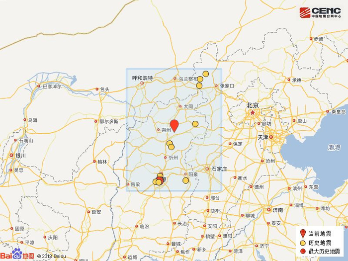 历史地震:根据中国地震台网速报目录,震中周边200公里内近5年来发生3级以上地震共13次,最大地震是2016年12月18日在山西太原市清徐县发生的4.3级地震(距离本次震中202公里),历史地震分布如图。