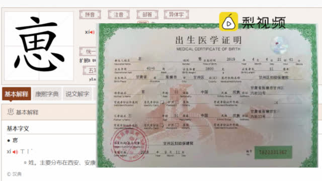 甘肃张掖,𠅤(xí)先生投诉称,儿子在办理出生证明时,由于姓氏生僻,系统无法识别,甘州区妇幼保健院建议孩子改姓。省卫健委回应,按照规定,遇生僻字可手写签发,直言工作人员工作方式粗暴。如今,孩子已经拿到了出生证明。