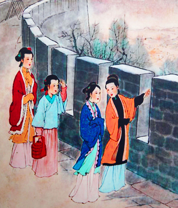 在江苏省南京市的金陵民俗馆展出的金陵民俗图画。在古代,深闺中的女子在中秋节的晚上可以出门夜游赏月。 ICphoto 图