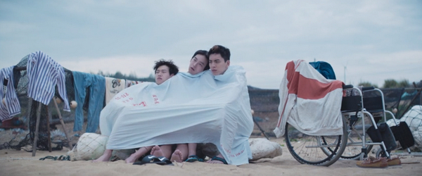 去海边这场戏,是相较于韩版为数不多有亮点的改编。他们中途遇到交警,交警做出停车的手势,他们误会了,跟交警来个击掌。后来偷偷告诉交警原委,交警被感动得一把鼻涕一把泪(呈现方式也是喜剧化),协助他们来到了海边。