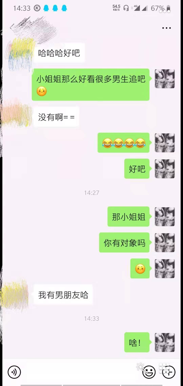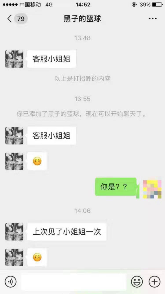 几分钟后,一个头像设置为“肌肉男模样”的陌生微信号联系上了记者的“女友”,通过验证后,对方开始从记者给出的职业入手与被测试对象聊天,在聊天中表示见过记者的“女友”,并夸其“好看”,想交个朋友↓↓