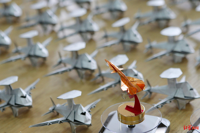 大型预警机作为空中领队机梯队的长机,率领磅礴的机群划破长空,3架歼-20、5架歼-16、30架歼-11B组成的歼击机梯队呼啸而来……这一次,这种震撼的场景,并非在祖国的蓝天,而是在两张长方形的桌子上,气势奔腾,栩栩如生。因为对折纸和飞机的热爱,75岁的成都老人许树全,40年来用废纸折叠出中国空军各种机型,在国庆节前夕,老人将现存上千架纸飞机展示了出来,以此向祖国和中国空军献礼,他说,在弘扬折纸艺术的同时,希望更多的人能了解中国空军,提升民族自豪感。