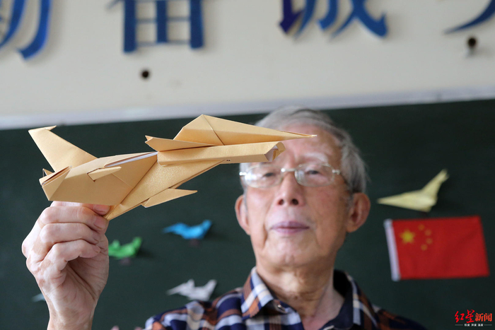 老人说,在上小学一年级的时候,看到同学折了一只纸飞机,从此对折纸产生了浓厚的兴趣。大专毕业之后,他被分到了成都飞机工业(集团)有限责任公司(原“国营132厂”)的成飞小学当老师。