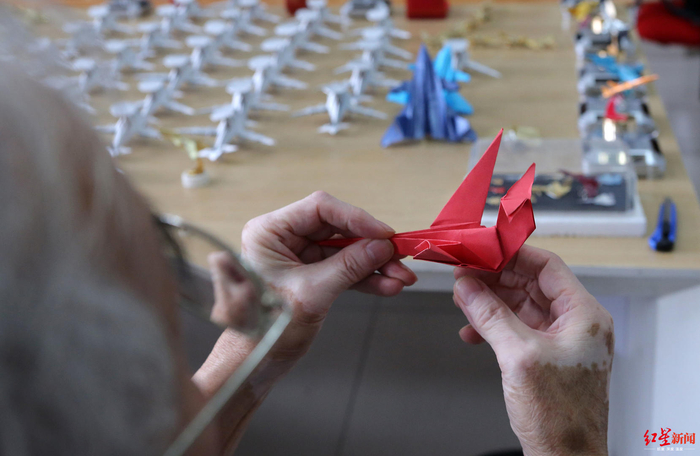 “我的进度慢了。”自觉还没有将“歼20”折完美的许树全既焦急又兴奋,尽管年事已高,但折飞机依旧是每天必做的事。
