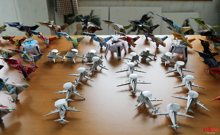 原标题:歼20歼10呼啸而来!成都75岁老人纸折上千架飞机献礼国庆